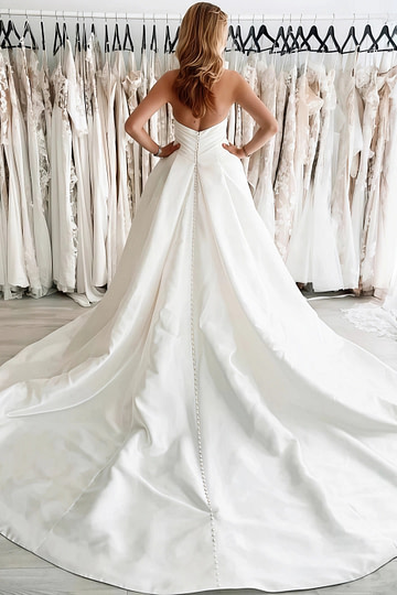 - โA Line Wedding Dress Perfection: Universally flattering drape flowing from a cinched waist.ย Pro Tip:ย Pair with floral lace for garden romance.