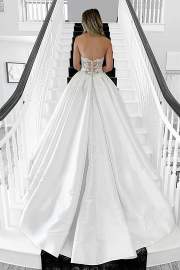 - โBall Gown Wedding Dress Majesty: Voluminous tulle skirts + corseted bodices for storybook grandeur.ย Ideal for:ย Classic church weddings, princess moments.