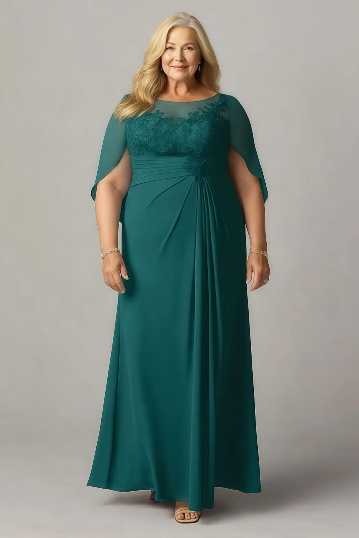 - Dramatic Cape Sleeves: The attached cape sleeves add a touch of theatrical elegance and graceful movement, making this mother of the bride dress with cape sleeves particularly ideal for formal ceremonies and evening receptions.