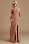 A: Our convertible bridesmaid dresses feature adjustable straps. Easily switch between off-shoulder and spaghetti strap looks in seconds.