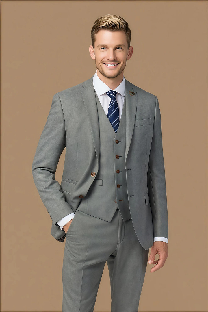 Meet the Akaks Axel Stretch Light Grey Suit, a sophisticated three-piece ensemble designed to elevate your presence across weddings, business galas, and father-of-the-groom moments. Crafted for the modern gentleman who values both tradition and understated luxury, this light grey suit blends meticulous craftsmanship with functional details to ensure you look polished from morning ceremonies to evening receptions.
