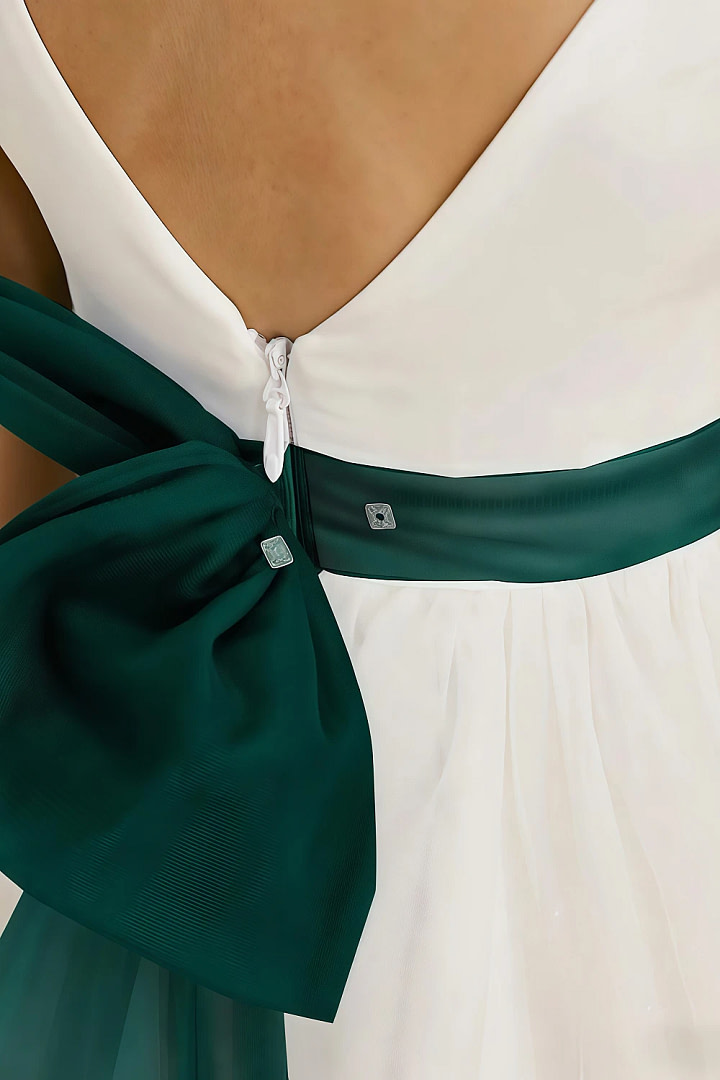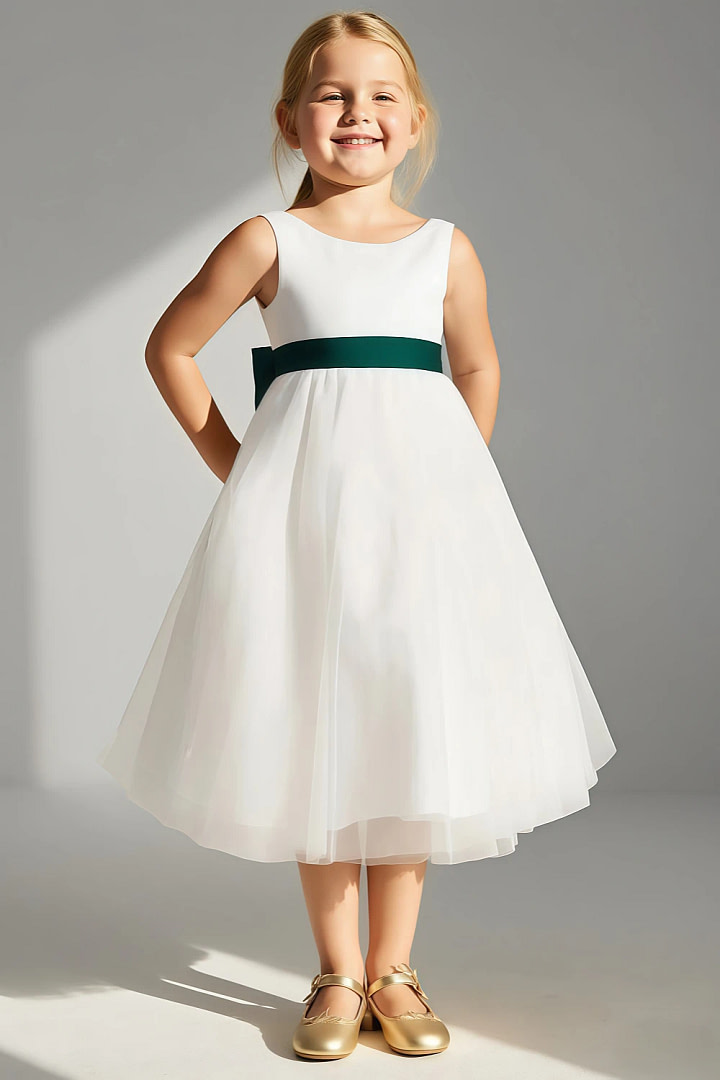 Designed to capture the magic of childhood, the Akaks Blythe Dress combines timeless elegance with playful charm. This A-line flower girl dress features a sleek matte satin bodice and a soft, multi-layer tulle skirt that floats with every movement. The sleeveless scoop neckline ensures comfort and freedom, while the low V-back with a hidden YKK zipper offers a secure yet graceful fit. Accented with a delicate sash and a dramatic detachable bow, this dress allows effortless style transitions—from classic to whimsical in an instant.