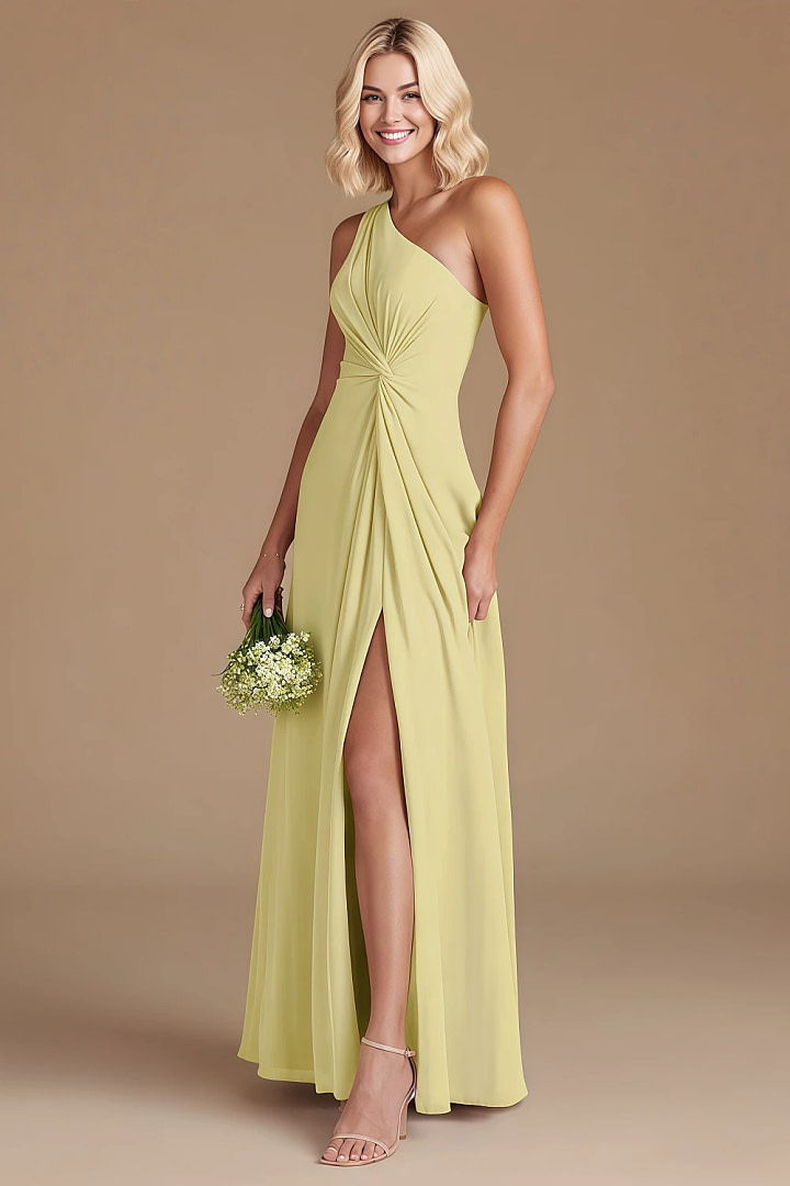 - Elegant One-Shoulder Design: This asymmetrical neckline adds a touch of sophistication with its smooth, draped shoulder—making it a standout among asymmetrical bridesmaid dresses. The design allows for freedom of movement while exuding chic minimalism.
