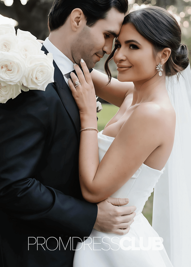 2. Breathtaking fit! The silhouette is impossibly flattering. Satin feels cool and comfortable against skin. Loved the simplicity letting the cut shine. Perfect modern bride look.