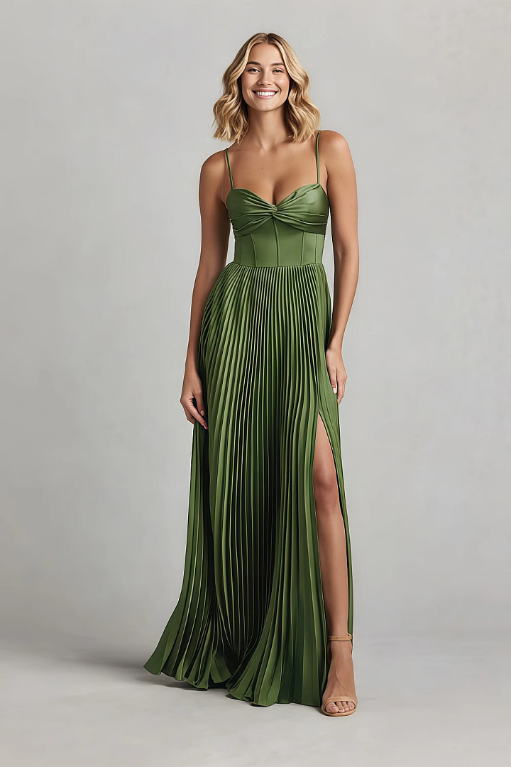Akaks Orla Dress is designed to make you shine at any sophisticated event. This floor-length gown combines timeless elegance with modern charm, making it an ideal choice as a Olive Green Wedding Guest Dress. Crafted from luxurious tulle with a satin bodice, it features a flattering A-line cut, a delicate sweetheart neckline, and adjustable spaghetti straps. The hidden YKK back zipper and exposed boning at the waist provide a secure and tailored fit. Whether you’re attending a formal wedding, an evening gala, or a garden party, this dress ensures you stand out with grace and confidence.