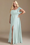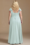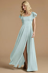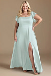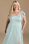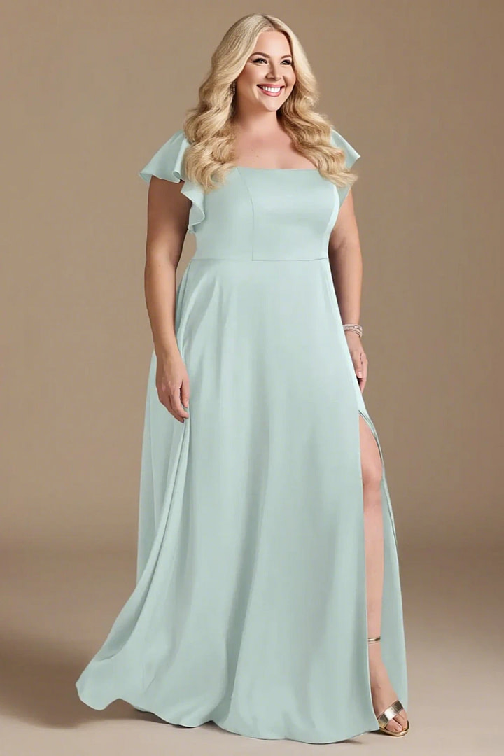 Tired of dull bridesmaid dresses? Meet our sea glass bridesmaid dress! This dreamy gown solves sizing worries and style compromises. With buttery-soft satin and figure-loving A-line cuts, it flatters all body types. Short sleeves add modest charm, while the high slit brings movement magic. Keep scrolling – your bridal party glow starts here!